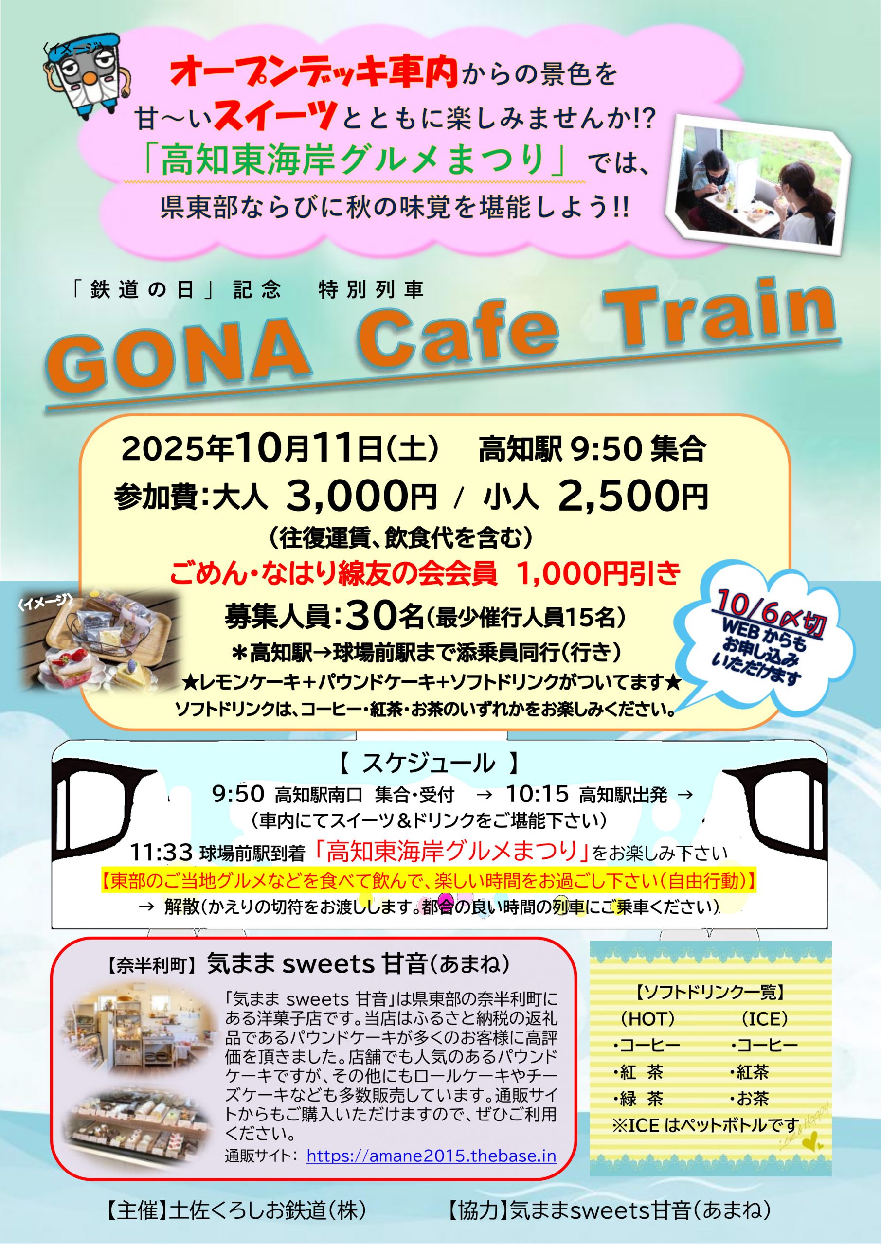 ☆11日(土)は「鉄道の日記念特別列車」ゴナカフェトレイン運行